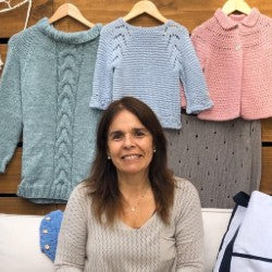 Al llevar 4 o más ovillos Blue Jeans, agrega a $1 el Patrón Brioche Cardigan