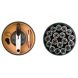 Set de costura con organizador plástico en forma de botón. Ideal para viajes y regalos!