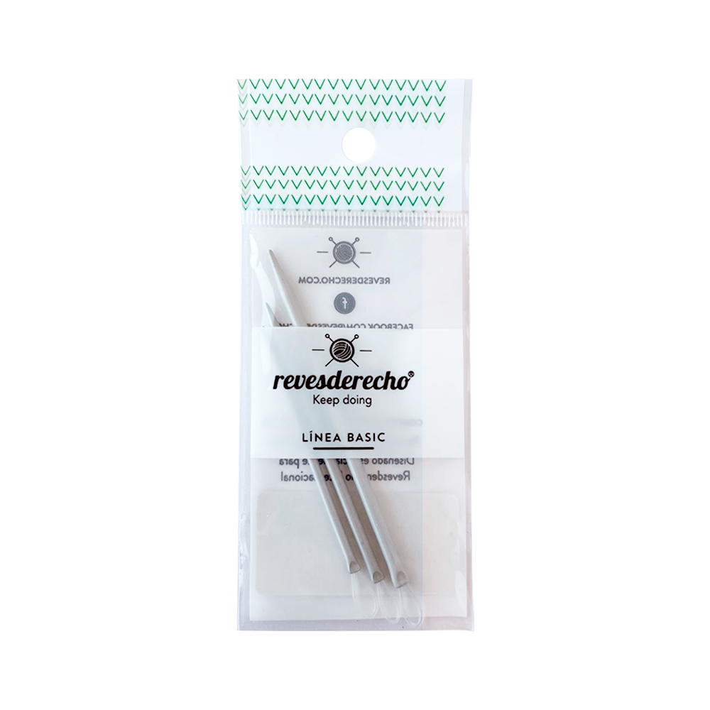 Aguja lanera básica de aluminio para las terminaciones de tus proyectos a palillo o crochet.Pack contiene 3 tamaños de agujas para adaptarse a tus necesidades.