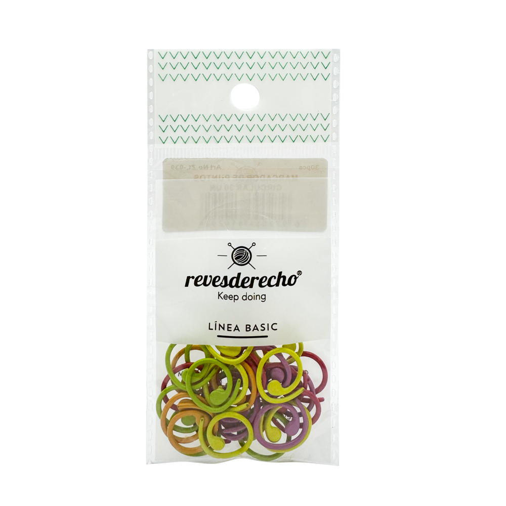 Marcadores de puntos metálicos, en colores surtidos para mejor visibilidad en cualquier color de hilado.