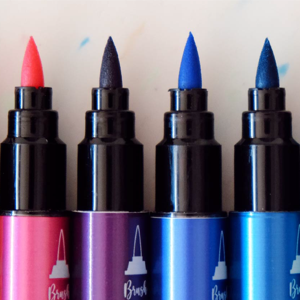 Punta pincel: ideal para zonas amplias, degradés suaves y trazos expresivos.Punta fina metalizada: perfecta para bordes, detalles brillantes y realces en tus obras.