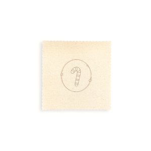 - 4 Telas crea de 15 x 15 cm pre marcadas con clásicos de la temporada: botita, regalo, galleta de jengibre y bastón de caramelo.