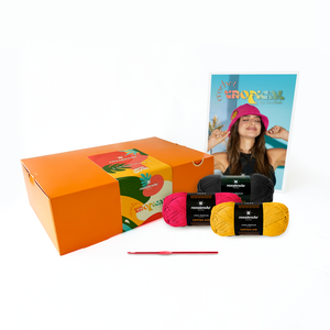 Te presentamos el KIT FRUTADO Bucket Hat, que incluye el patrón impreso con todas las instrucciones y el paso a paso en forma detallada para las tallas S-M-L-XL; además del crochet ideal y ovillos de COTTON MID, uno de los mejores hilados de fibra reciclada para tejer la prenda que elijas.
