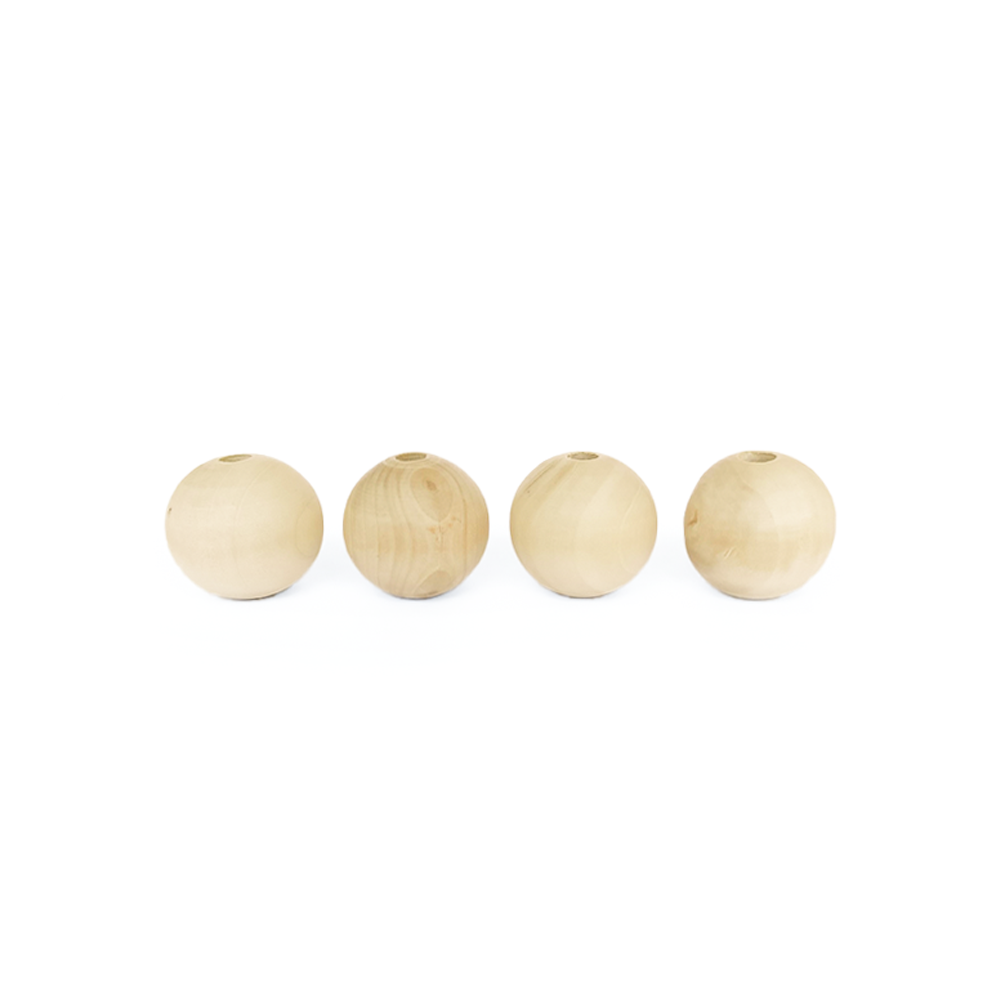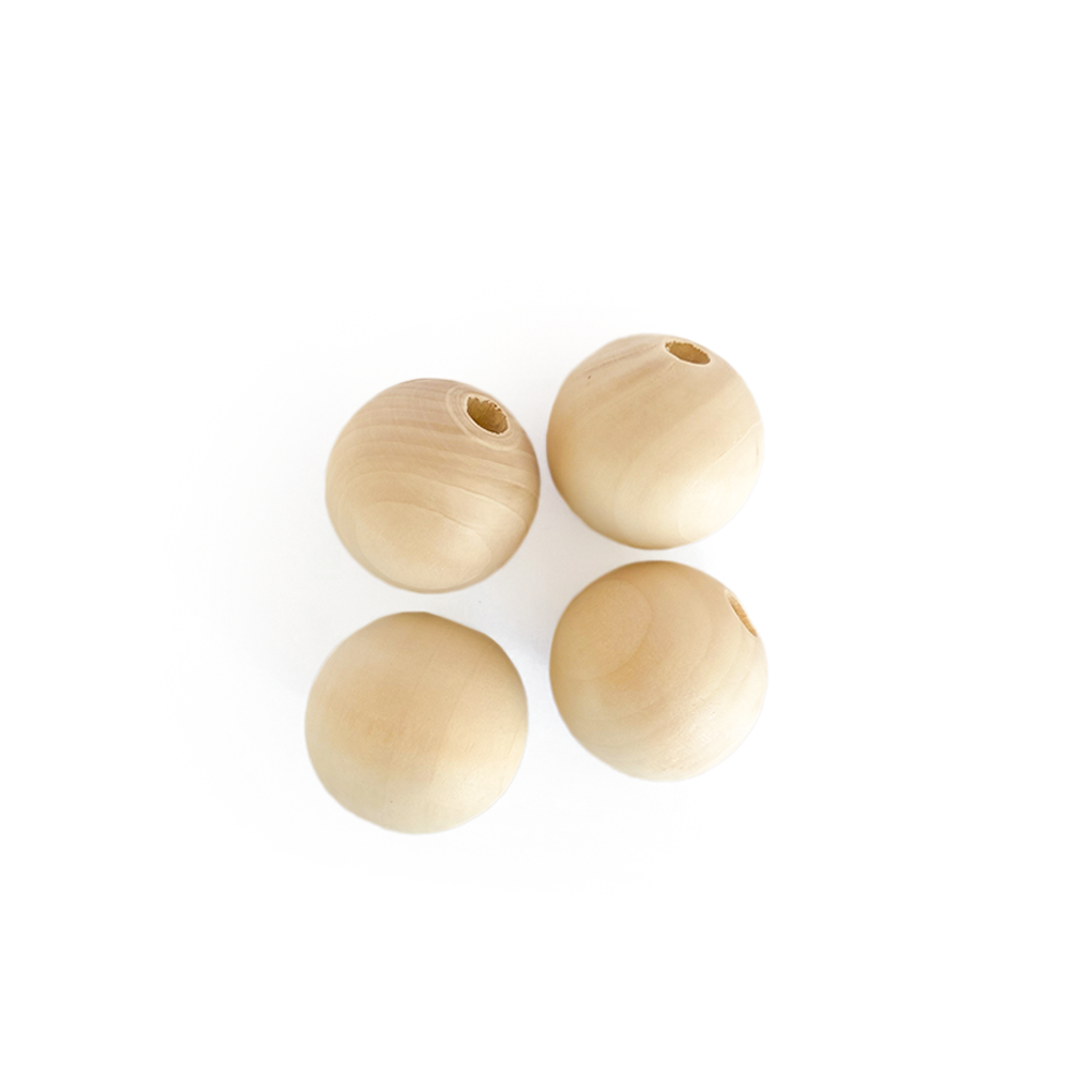 Cuentas de madera, color natural en forma circular de 30mm.Útiles para crear decoraciones en macramé y muchos proyectos.Cada paquete contiende 4 unidades.