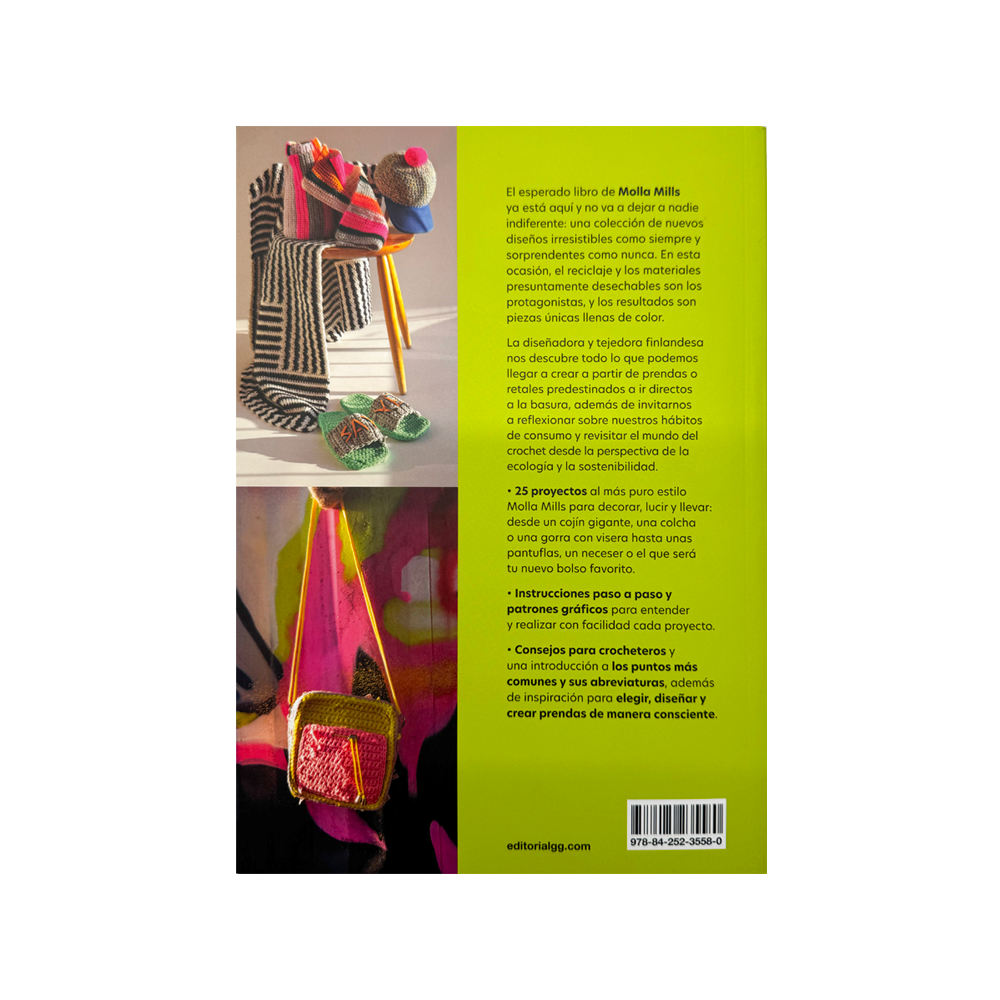 Escrito en español, con fotografías inspiradoras y explicaciones claras, este libro es un must para amantes del crochet, el diseño sostenible y el DIY.