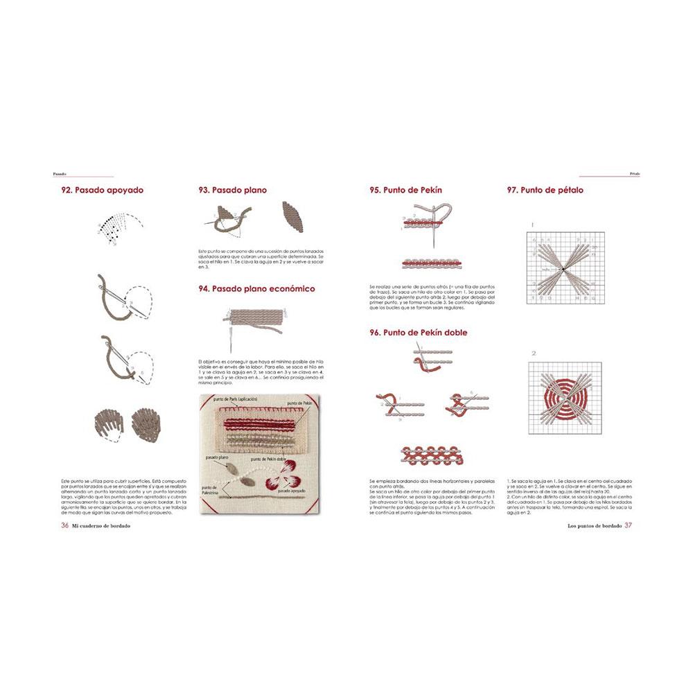 Una lista completa de puntos de bordado, con ilustraciones mostrando el paso a paso ¡Más de 100 puntos de bordado! cordoncillo, punto turco, cadeneta, entre muchos otros Incluye 7 ideas de proyecto, además de técnicas y preparativos