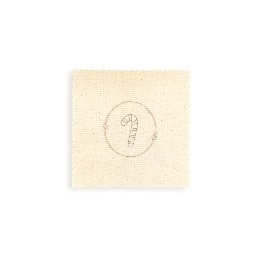 - 4 Telas crea de 15 x 15 cm pre marcadas con clásicos de la temporada: botita, regalo, galleta de jengibre y bastón de caramelo.
