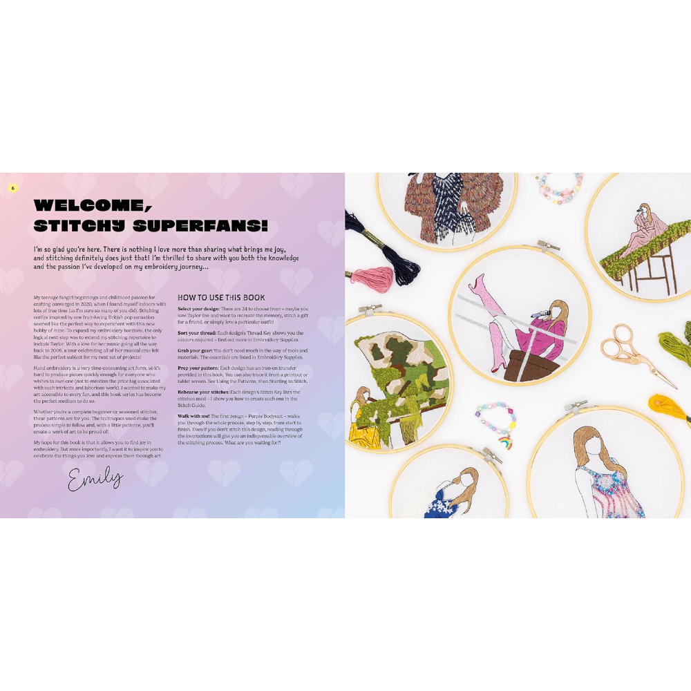 Deja que tu fan interior brille en cada puntada! Este es más que un libro de bordado: es un tributo creativo a la música, la moda y la magia de Taylor. Perfecto para disfrutar, coleccionar o regalar.