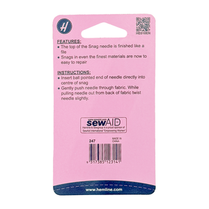 Esta aguja metálica especial cuenta con una punta redondeada tipo ballpoint y un cuerpo con textura tipo lima que “atrapa” los hilos sueltos sin dañar la prenda.