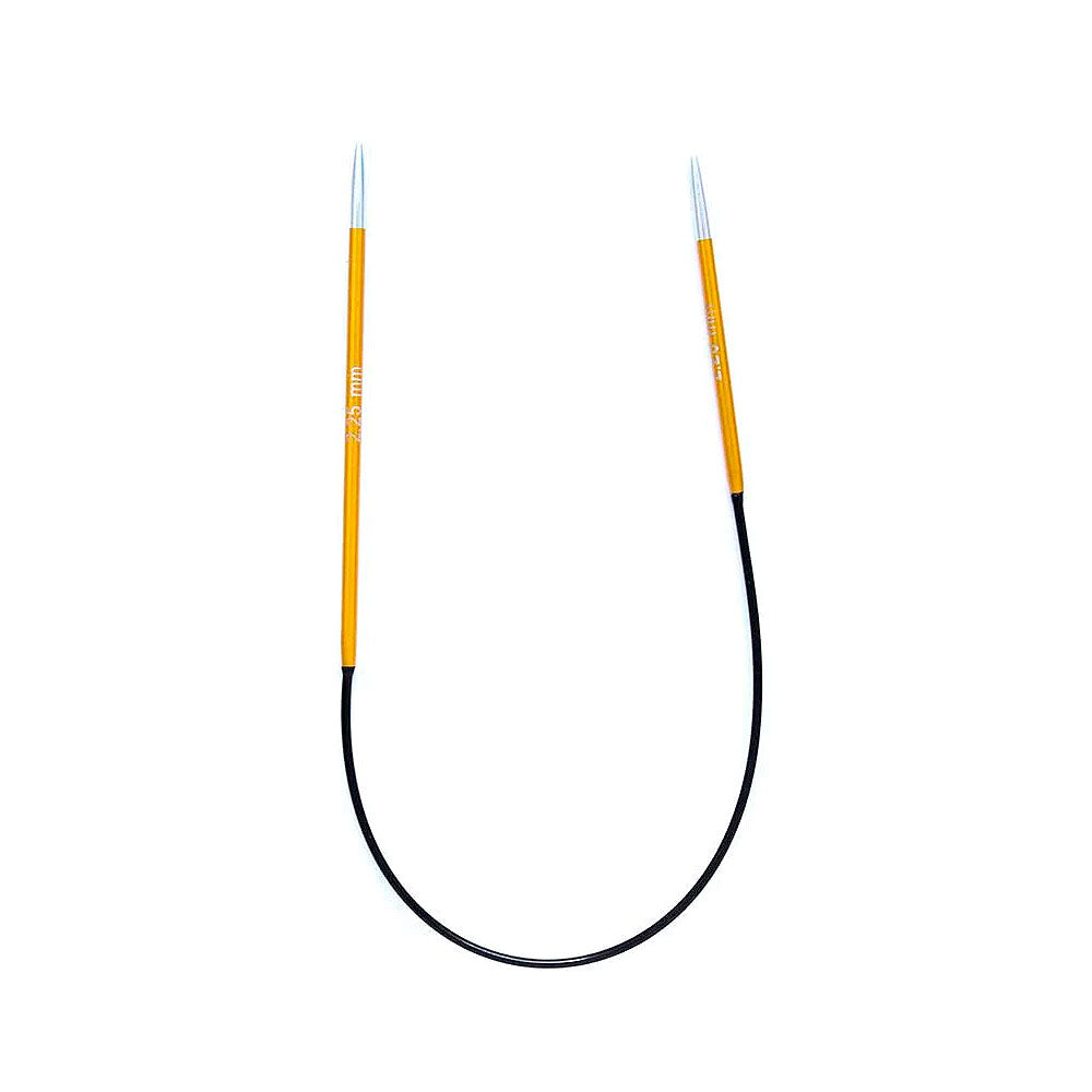 Knit Pro nos sorprende con los nuevos palillos circulares cortos asimétricos de la línea Zing.Fabricadas en metal liviano en colores vibrantes. Cada color representa una medida específica de palillo. Lo especial de estos palillos es que uno mide 4,5cm y el otro es de 7,0cm de largo, el cable es de 13,5cm, haciendo una longitud total de 25cm. El palillo más largo se sujeta con la mano derecha para tejer y la más corta con la izquierda, esto hace que tejer los diámetros más pequeños (calcetines, mangas para bebes, puños, etc.) sea mucho más cómodo. Disponible en 11 medidas:2.00 - 2.25 - 2.50 - 2.75 - 3.00 - 3.25 - 3.50 - 3.75 - 4.00 - 4.50 - 5.00 mmCada palillo cuenta con un largo de 25 cm de extremo a extremo.