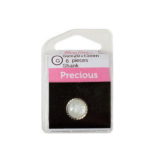 Lindo y delicado botón de perla con un pequeño borde en color plata, este botón le dará un toque de elegancia y luz a nuestras prendas.
