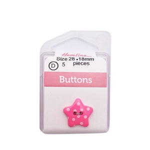 Lindos y divertidos botones con forma de estrella, en vibrantes colores con estampado de puntitos blancos. Ideales para proyectos infantiles.