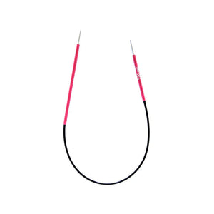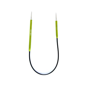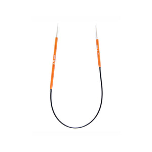 Fabricadas en metal liviano en colores vibrantes. Cada color representa una medida específica de palillo. Lo especial de estos palillos es que uno mide 4,5cm y el otro es de 7,0cm de largo, el cable es de 13,5cm, haciendo una longitud total de 25cm. El palillo más largo se sujeta con la mano derecha para tejer y la más corta con la izquierda, esto hace que tejer los diámetros más pequeños (calcetines, mangas para bebes, puños, etc.) sea mucho más cómodo.