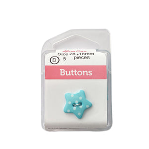 Lindos y divertidos botones con forma de estrella, en vibrantes colores con estampado de puntitos blancos. Ideales para proyectos infantiles.