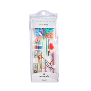 Incluye cinta métrica, aguja de lana, enhebrador, marcador de puntos, tope para palillos, sujeta puntos, y palillos de ayuda