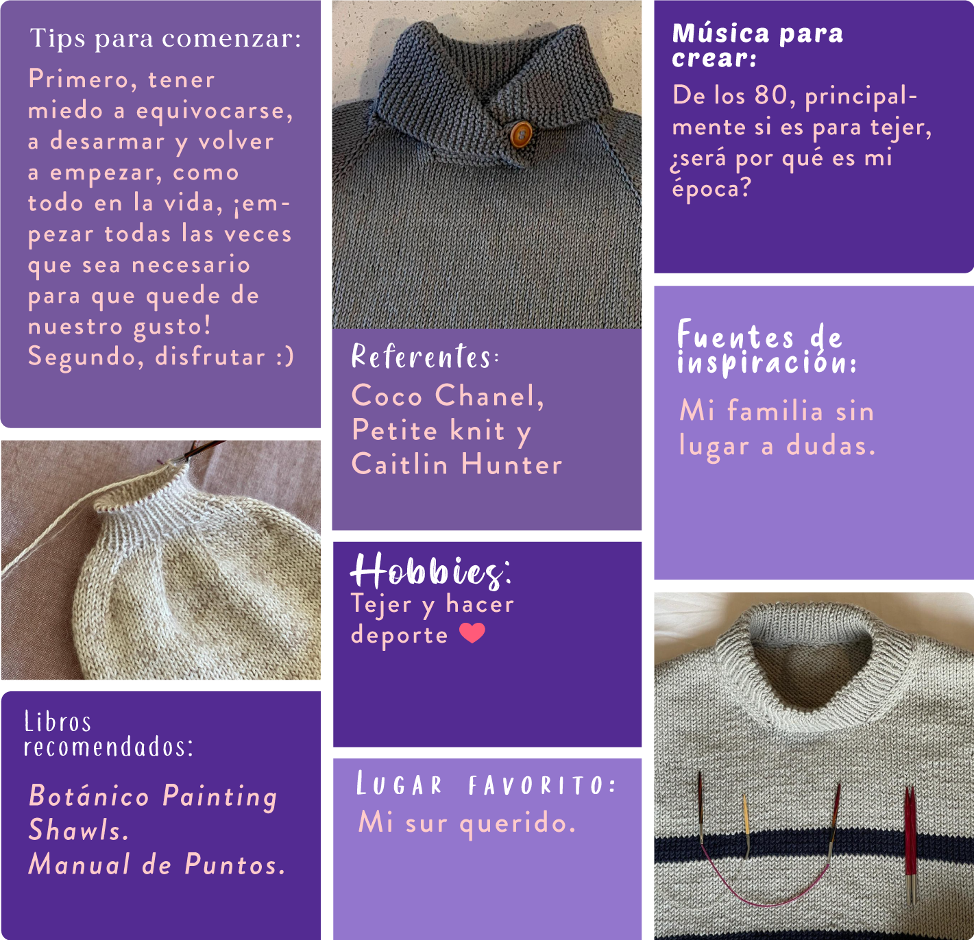 ¡Hola! Soy Ana, Jani o Anita, soy periodista, casada y mamá de 4 lindos niños. Aprendí a tejer chica, en el colegio y después seguí con mi abuelita como muchas, pero lo que realmente me impulsó e hizo crecer fue la pandemia… buscando que mis hijos vieran que nos desconectábamos de las pantallas y nos reconectábamos con la realidad a través de las manualidades. Fue el tiempo disponible, las ganas y el auto dinamismo que hicieron que aprendiera muchísimo acerca de este arte espectacular, ¡que realmente no tiene límites! Me encanta que actualmente incluso la moda abre sus puertas al trabajo manual y realmente entrega el valor que tienen los productos hechos a mano, y que esto esté llevando a que mujeres y hombres de todas las edades se estén animando a aprender a confeccionar sus propias prendas a palillo. ¡Me encantaría ayudarte en ese proceso!