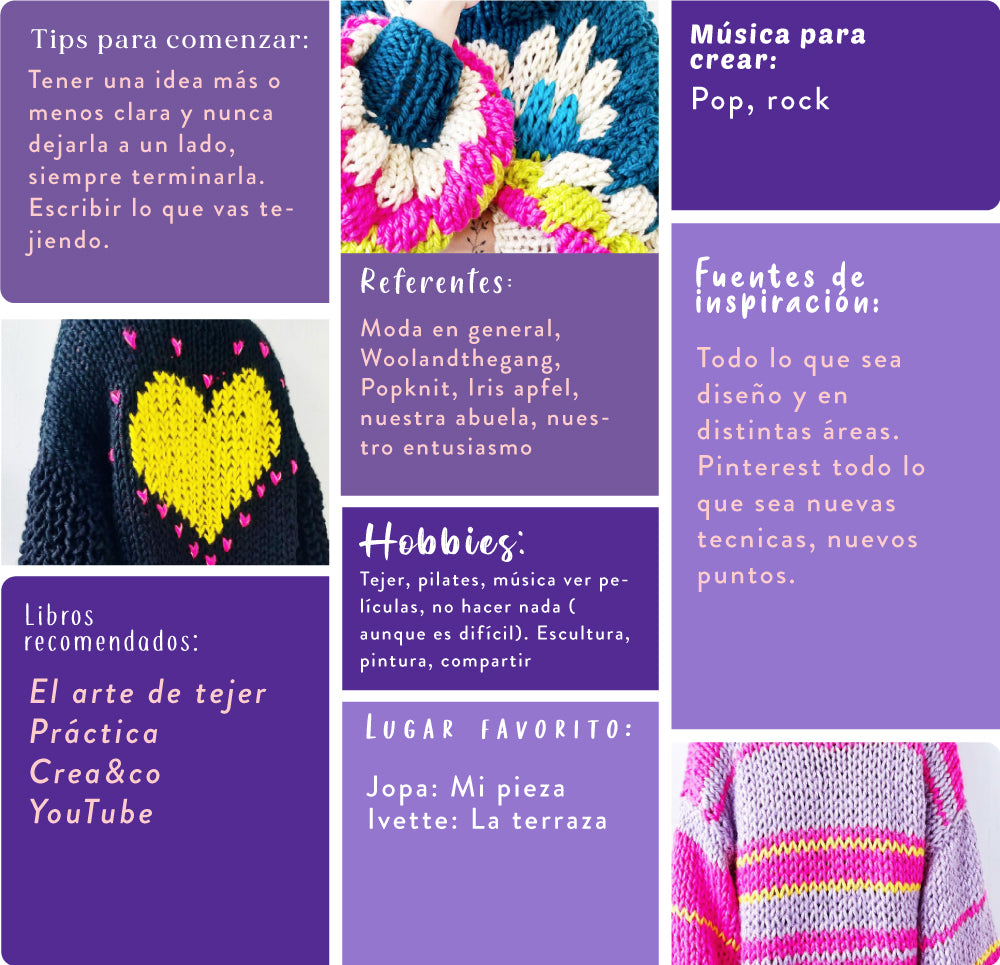 Somos Jopa e Ivette de @corazon.tejido, somos primas y nos dedicamos a confeccionar chalecos coloridos y abultados de gran caída.Jopa es publicista de profesión, e Ivette es auditor. Creamos corazón tejido por el amor a tejer, al diseño, a los colores, a lo hecho a mano y – lo más importante- a lo vivido con nuestra abuela desde pequeñas. Lo llevamos en la sangre y nos inspira como un mágico descubrimiento, creativo y humano.Aprendimos varias técnicas antes de empezar con Corazón Tejido, pero fue una gran sorpresa para las dos reencontrarnos como familia, ya que se puede decir que el tejido nos entregó un vínculo ancestral y de unión que nos haría socias de esta linda marca.Como somos inquietas, constantemente buscamos nuevas formas de inspiración. A Ivette le encanta experimentar con nuevas técnicas, puntos nuevos y mezclar. A Jopa le gusta la simplicidad y el poder que juegan los colores cuando se combinan; es decir, somos una gran dupla cuando nos ponemos a trabajar.Creamos piezas que salen del alma y únicas, que surgen de una singularidad particular, pensada en un momento y estado especial, lo que terminará siendo un corazón tejido que iluminará a la persona que lo elija y use.El nombre @corazon.tejido nace en un susurro dicho al oído cuando Jopa estaba durmiendo. Un día despertó un día convencida de que una mujer le dijo ese nombre. Le dio vuelta por varios días y le encontró un significado especial: Al igual que el tejido, la vida se comporta en forma muy similar a cómo podemos llevarla; cuando algo sale mal lo destejes, lo vuelves a tejer o vuelves a empezar. Pero lo grandioso es cuando te das cuenta en el producto final queda más hermoso de lo que esperabas, porque pusiste el corazón y las ganas de que resultara. Esto es muy similar a lo que pasa día a día en nuestras vidas y es la comparación que hace Jopa entre el tejido y la vida. Es una comparación bonita. De ahí en adelante Corazón Tejido tiene más sentido para nosotras, porque ponemos amor, alma, energía y corazón en cada uno de nuestros tejidos, lo cual vemos reflejado en el cariño que nos entregan nuestros clientes y seguidores. Esto nos impulsa a seguir trabajando con infinito corazón en todo lo que hacemos.