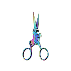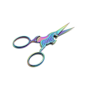 Tijeras metálicas para bordar unicornio arcoíris con una punta muy afilada. Acero inoxidable, adecuado para proyectos generales de confección y manualidades.