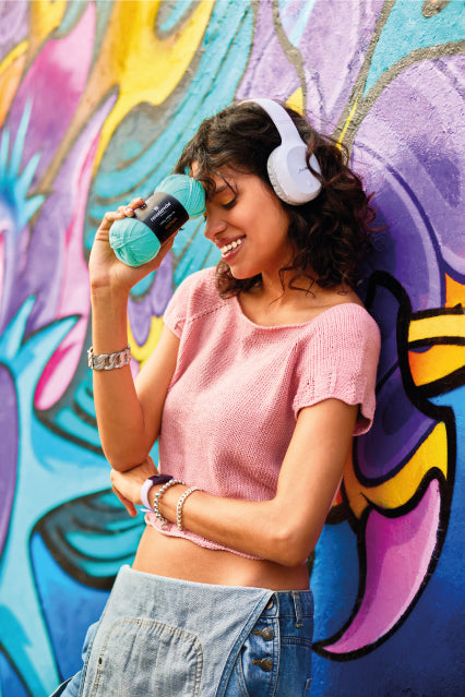Al llevar 4 o más ovillos Blue Jeans, agrega a $1 el Patrón Brioche Cardigan