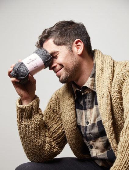 Al llevar 4 o más ovillos Blue Jeans, agrega a $1 el Patrón Brioche Cardigan