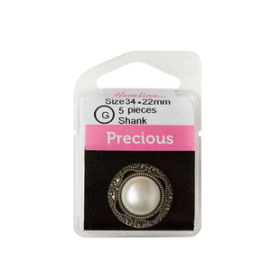 Lindos y delicados botones de perla con borde en relieve de color plata, este botón le dará un toque de elegancia y luz a nuestras prendas. Encuéntralo en dos tamaños.
