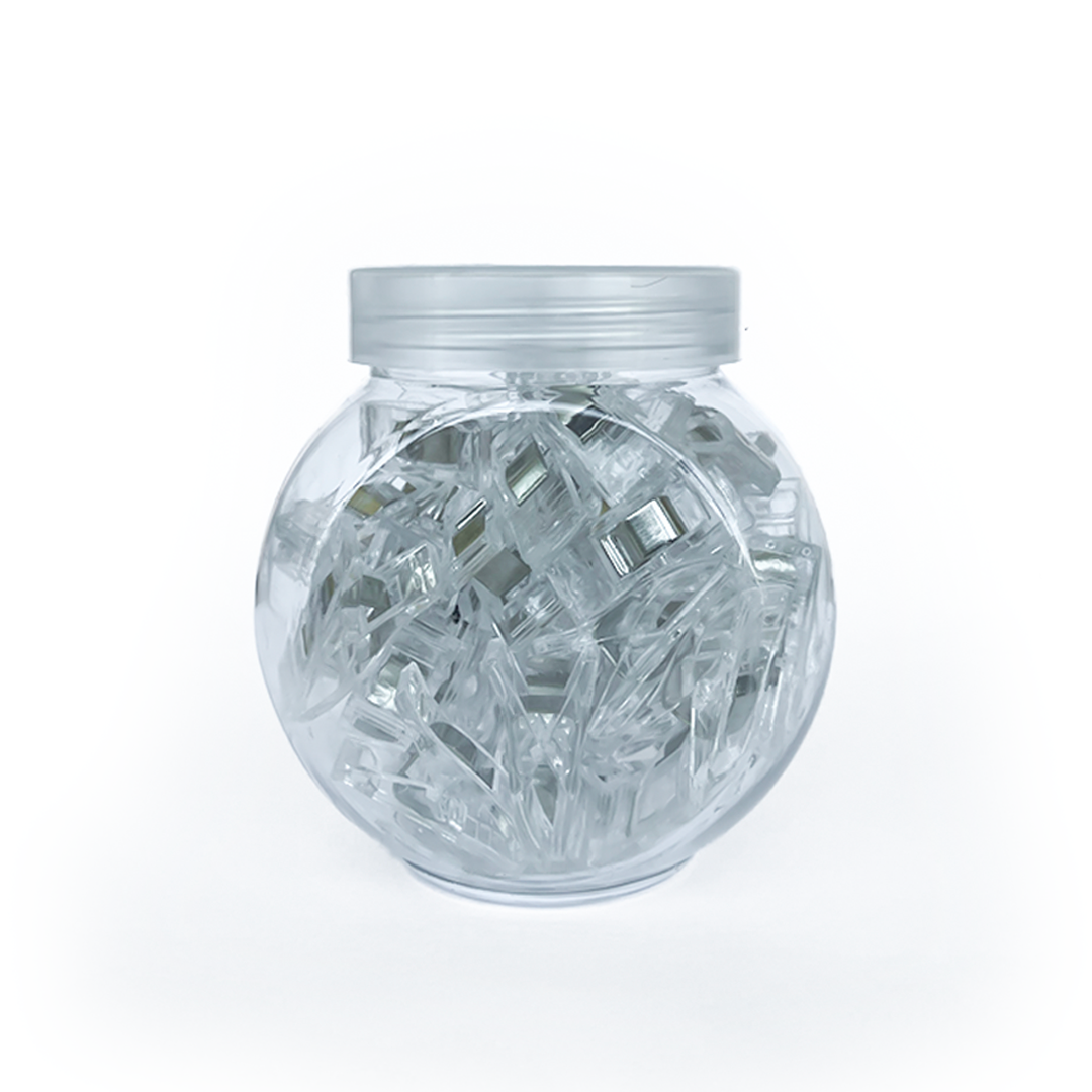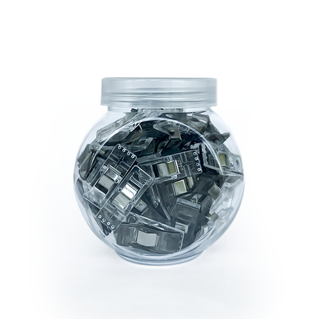 Colores: Rojo, Negro, y Transparente.Contenido: 50 unidades por tarroMedidas: Cada clip mide 26 x 10 mm