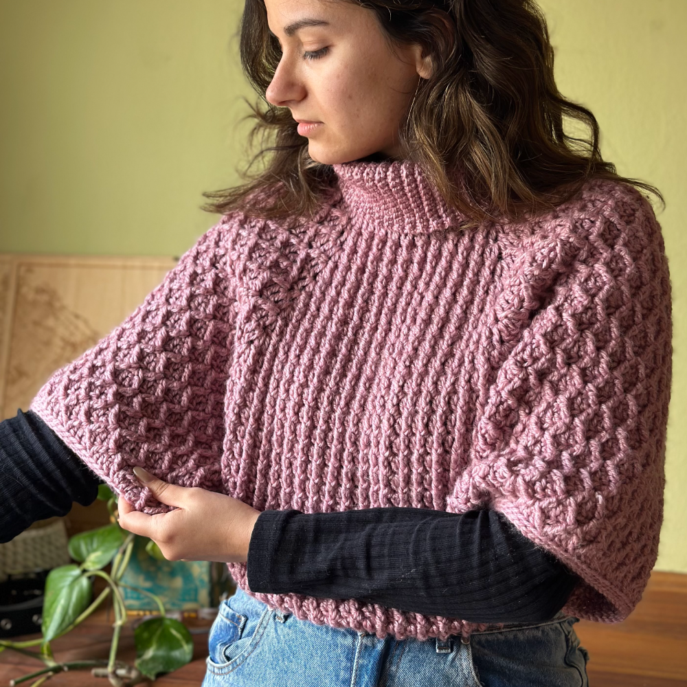 Al llevar 4 o más ovillos Blue Jeans, agrega a $1 el Patrón Brioche Cardigan