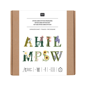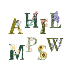El kit borda y pega hidrosoluble te permite bordar todas las letras del alfabeto con distintos diseños florales.