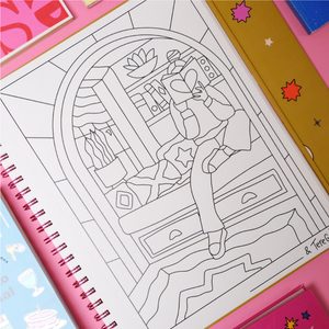 Cada página está en papel dúplex de 240 g, con prepicado para recortar y enmarcar tus obras. La tapa dura y el anillado oculto permiten pintar completamente planos, sin esfuerzo. Puedes pintar con lápices, plumones, acrílico, acuarela, e incluso intervenir con bordado o mostacillas, creando obras multitextura y llenas de vida.