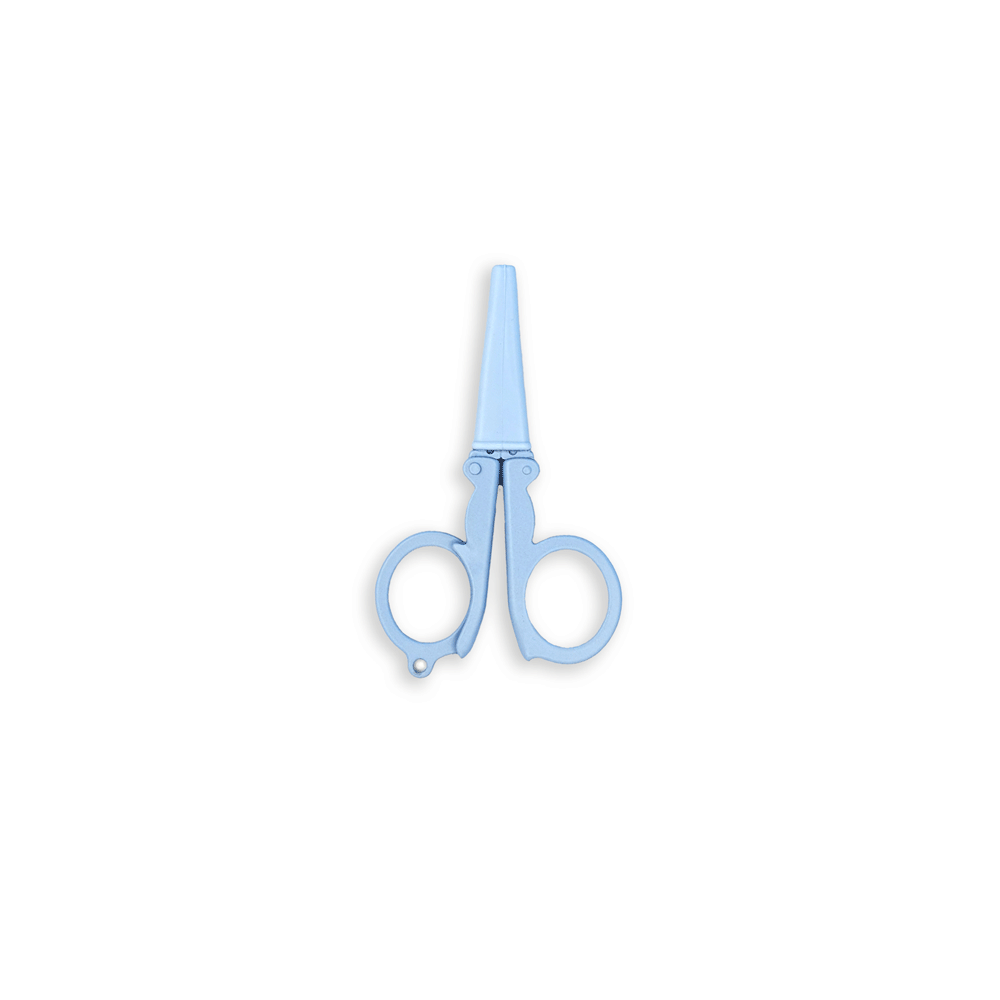 Una tijera con aire retro que se pliega para ocupar mínimo espacio. Trae protector de punta de silicona y orificio para llavero, perfecta para tu estuche, bolso o set de viaje.